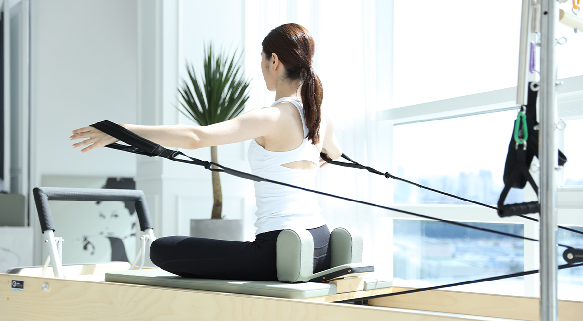 리포머(Reformer) 리포머는 죠셉 필라테스의 리포머에 현대적 의학 지식과 운동역학 등을 적용하여 더 다양한 운동을 할 수 있도록 현대적 감각을 가미하여 개발된 대표적인 필라테스 기구입니다. 리포머는 기구 하나로 100가지 이상의 운동을 할 수 있으며 특히 코어를 고정해서 운동 할 수 있어 균형 잡힌 운동과 바른 자세를 만들어 줍니다. 특히 몸의 중심부(Core)를 고정해서 운동 할 수 있습니다. 정교한 장치들(조절 스프링, 레일, 스트랩 등)이 효과적이면서도 적절한 운동을 도와주며, 근육의 양적 강화보다는 질적 강화와 균형에 초점을 맞춘 기구입니다.